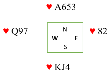 4 spilleksempler fra spill 1- 18. Spill 8 med Vest giver og ingen i faresonen ble avgjort på nokså tilfeldig måte skyldes trumfsitsen. Svein Grimstad (N)-Flemming Johnsen (S) møtte brødreparet Jarle Melbye (V)- Hans Melbye (Ø) etter pass fra Jarle hadde Svein denne hånden: