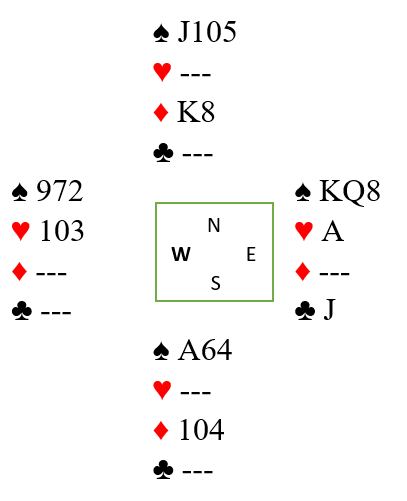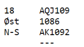 Øst åpner med 3 kløver. Kanskje litt overraskende melder makker på syds plass inn 4 hjerter. Vest melder 5 kløver og det er din tur. Hva melder du?