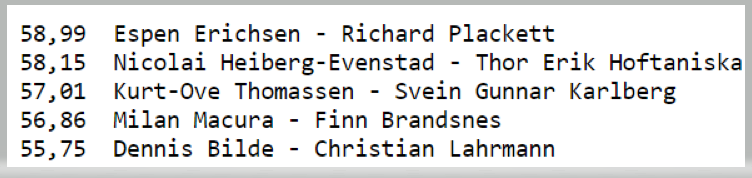 Det var Espen Erichsen sammen med Richard Plackett fra Wales som snek seg forbi til slutt og vant. Topp 5 så slik ut: