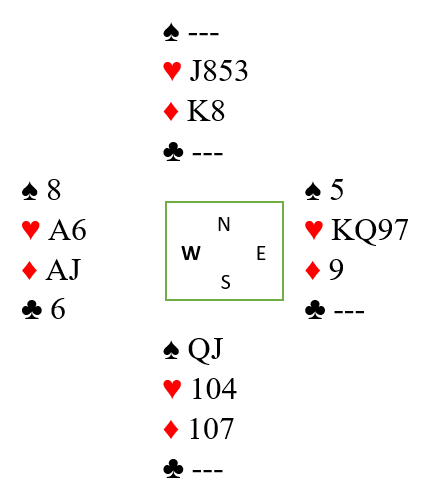 (Merk at med trumf ut mot 7 kløver ville den stått på denne måten selv om vest hadde bare A-2 i ruter og øst 4-3 dobbel!)