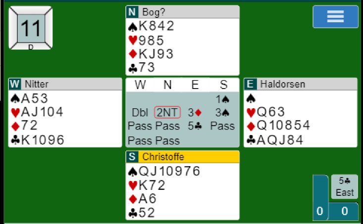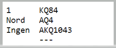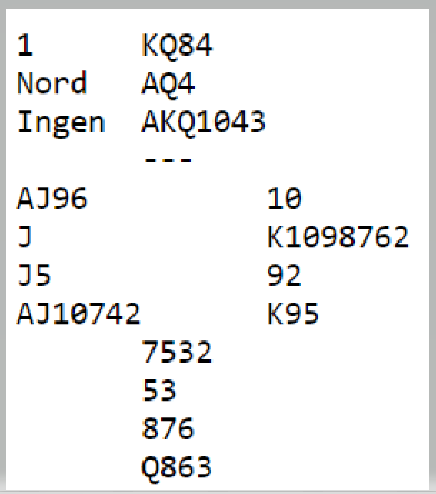Du skal spille 7 kløver etter kløver 4 i utspill fra nord. Prøv deg selv før du ser alle kortene lenger ned på siden.