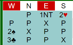 Som du ser havnet Brekka og Grude i 6 spar etter sperreåpningen 3 hjerter fra vest. Det er ikke lett å melde når det starter så høyt, og slemmen de havnet i er temmelig hard. Dessuten kom den tilfeldigvis på en måte på feil hånd (nord), men det spilte ingen rolle siden øst hadde kløver ess.