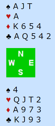 19 hp med to gode minorfarger kunne reverseres, så jeg åpnet med 1 kløver og etter pass fra Mosby svarte Marthinussen 1 hjerter på dette: