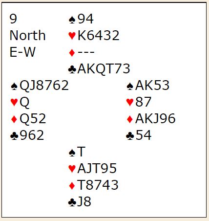 Høyeste kontrakt har N/S, de kan vinne tolv stikk i hjerterkontrakt. Det er bare en spartaper, men det er klart at øst med A-K i to farger ikke har så stor tro på at det er riktig å stampe over 6 hjerter. Det tror nok vest, men han vil også være usikker i slike spill hvis makkeren har vist bra kort og kanskje kan ha to stikk mot hjerterkontrakt. Det har han ikke her hvor N/S har så fantastisk fordeling og kortene passer perfekt mot hverandre.