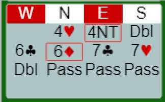 Om syds dobling av 4NT bare var en frekkass, eller det kanskje viste stampeinteresse vites ikke. Det ble imidlertid syd som måtte ta avgjørelsen til slutt uansett, og han gjorde det riktige da han stampet i 7 hjerter.