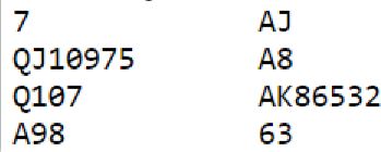 Hva med 6 hjerter? Den er også nedlegg om det ikke kommer kløver i utspill. Men om det utspillet kommer er det kritisk. I så fall er 6 hjerter ingen god kontrakt da hjerter konge i så fall må sitte dobbel i saks slik at trumfen kan tas ut med en finesse, så esset som tar med seg kongen og deretter over til vest for å ta ut forsvarets siste trumf.