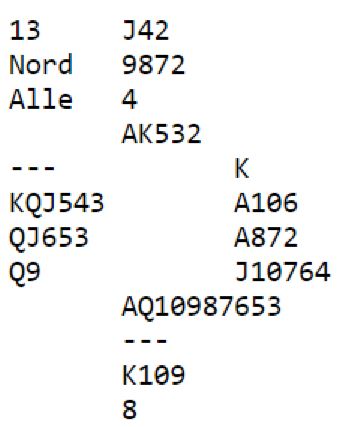 Med åpne kort kan det vinnes tretten stikk i ruterkontrakt. Da må sparstikk godspilles for hjerteravkast (spar ess, så spar til stjeling som tar med seg både kongen og nieren fra øst, så senere presses vests dame ut mot trumf og åtteren står!). Dessuten kan ruter ess spilles fulgt av finesse over øst idet tieren faller fra vest, men det er langt i fra noe opplagt valg. Det er sannelig ikke lett å treffe så godt i spilleføringen uten noen indikasjoner, og de som var i slem gikk bet, unntatt ved ett bord.