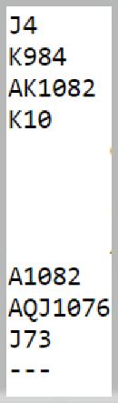 I 6 hjerter går det ikke an å unngå spartaper så ruteren må gå for at det skal kunne bli tolv stikk. Med åtte rutere til sammen er beste sjanse å ta finessen. Damen foran er 50%, men en liten tilleggsjanse er at damen sitter singel bak, for før finessen tas bør en topphonnør innkasseres. Å spille på damen dobbel bak er klart mindre sjanse enn damen tredje, fjerde eller femte foran. I tillegg til rutersjansen kan jo det hende vest noen ganger spiller ut kløver ess mot slem, og med kongen godspilt er det ingen problemer, kun en spartaper og mulighet for tretten stikk. Men meldingene kan kanskje ha avslørt at kløver ess ut er fånyttes, for noen steder vil syd ha fortalt om renons i kløver.