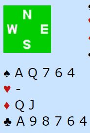 Vest spilte ut hjerter knekt. Da var det bare å trumfe, spille seg over til nord på trumfkongen og ta sparfinessen. En ruter forsvinner fra nord i andre runde spar og det er igjen fire trumf hos nord til å trumfe en ruter og tre spar (om nødvendig kan hjerter dame godspilles også) - tolv stikk. Det ga en massiv +1370 til notering.