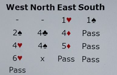 Kvangraven så nok for seg en god del mer hos øst og med to ess meldte han altså 6 hjerter etter at Levinson hadde meldt temmelig brutalt på andre siden av bordet.