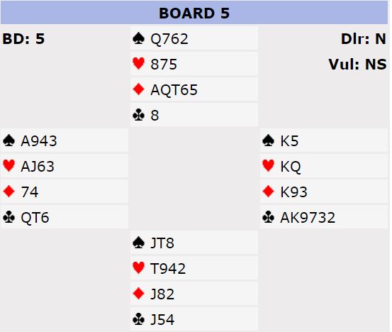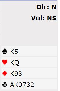 En rask gjennomgang av listene til SCORWAY viste at de spilte godt og solid. Så at vi tar med et særdeles heldig spill er ikke for å påstå de hadde flaks i turneringen over hele 144 spill. Men i dette tilfellet Fru Fortuna i perlehumør og på SCORWAY sin side. Spillet starter med et valg av åpningsmelding for øst, og du kan jo selv bestemme deg for hva du sier: