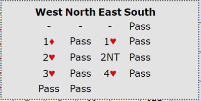 Ida (øst) sin grandåpning er god etter min smak. Spesielt med slike 4-5 hender og firekorts hjerter og femkorts minor og rundt 15-16 poeng er det ekkelt om man åpner med 1 i minor og makkeren viser sparfarge. Hva blir åpnerens andre melding da? Alle tenkelige gjenmeldinger blir på en eller annen måte feil.