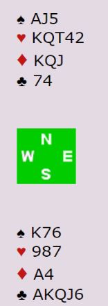 De fleste spilte utgang i hjerter eller grand. Noen veldig få par var i 6 hjerter og vant den. Det er imidlertid alt for hardt, og kløver ut fra syd beter slemmen. Om det kommer kløver ut rekker ikke spillefører å få spilt tre runder trumf før de fire sparstikkene må tas med avkast av kløver. Dessuten er det jo heldig at det er fire sparstikk, og i hjerterfargen må det også unngås to tapere.