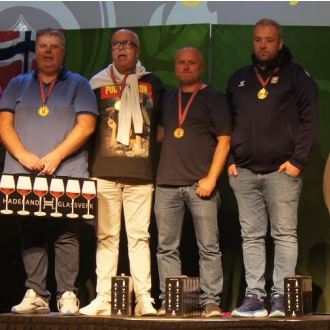Fornøyde norgesmestere, fv. Cato Sundeng, Per-Ove Grime, Sigurd Evjen og Kåre Bogø (bildet er sakset fra bulletinen)