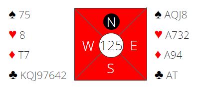 Dette er et slikt spill som mange omtaler som "en bør spille 5 kløver eller 7 kløver". Ingen vits i å spille 6 kløver da det er enten 11 eller 13 stikk. Det er nok ikke helt riktig, for det kan jo komme en annen farge i utspill. I så fall er det tolv enkle stikk. Så å spille 6 kløver er fint nok, en 50% sjanse med ruter ut, 100% med annet utspill. Men hvordan komme dit?