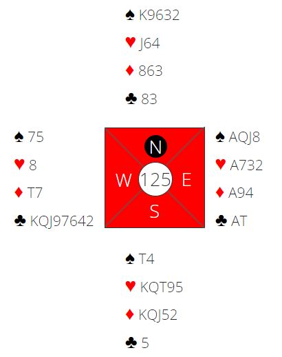 De som stoppet i 5 kløver fikk litt under middels da det var noen som spilte 3NT, og de fikk litt over middels. Noen få par var i 7NT og gikk bet.