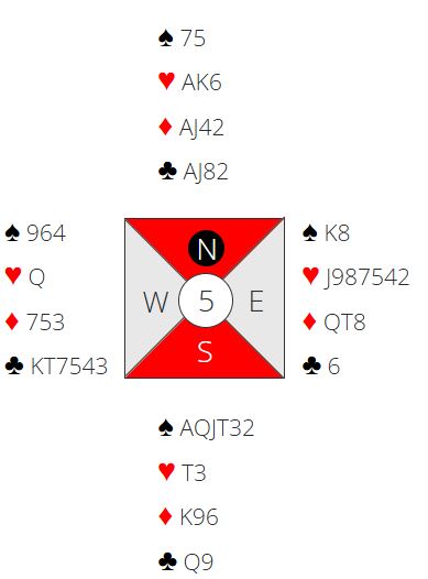 N/S har 17 + 12 poeng, dvs. 29 HP til sammen. Vanligvis bør man har ca. 32-33 HP til sammen for å ha en bra sjanse til å vinne lilleslem. Men det er bare en rettesnor som dog stemmer bra i de fleste spill, spesielt hvis de to hendene er relativt balanserte.