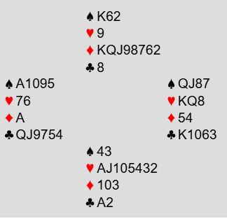 Vest åpner med 1 kløver hvis det spilles med vanlig system. Nord hopper innpå med 4 ruter, og øst dobler. Hvordan har du og din makker definert en slik dobling av en melding på fire-trinnet?