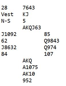 I det neste spillet vi tar med gjorde litt over halvparten av N/S-parene det bra.