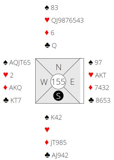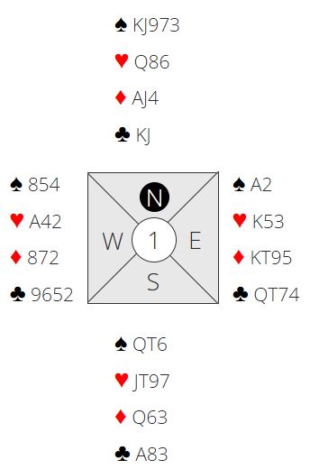 Om en ser bare på N/S sine kort er det bare tre tapere. Men 4 spar kan betes og det kan sogar bli flere bet om motspillet sitter. Selv med ruter ut bør det bli det minst en bet. Spillefører går på trumfen, men da kan vest skifte til hjerter ess og mer hjerter. Øst trumfer og spiller kløver ess og kløver til trumf hos vest – to bet. Om vest skulle finne på å spille ut hjerter ess kan forsvaret få full uttelling. To stjelinger hos øst med hjerterspill hver gang vest er inne, to stjelinger hos vest med kløverspilling fra øst samt tre ess = syv motspillstikk! Men selv med fire mulige bet i 4 spar pga. den spesielle sitsen er det helt naturlig å være med til 5 ruter som Ø/V.