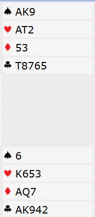 I dag se vi på et spill fra en lagturnering i helgen hvor det ble et ekkelt valg i spilleføringen for dem som fant fem til den gode slemmen 6 kløver med disse kortene: